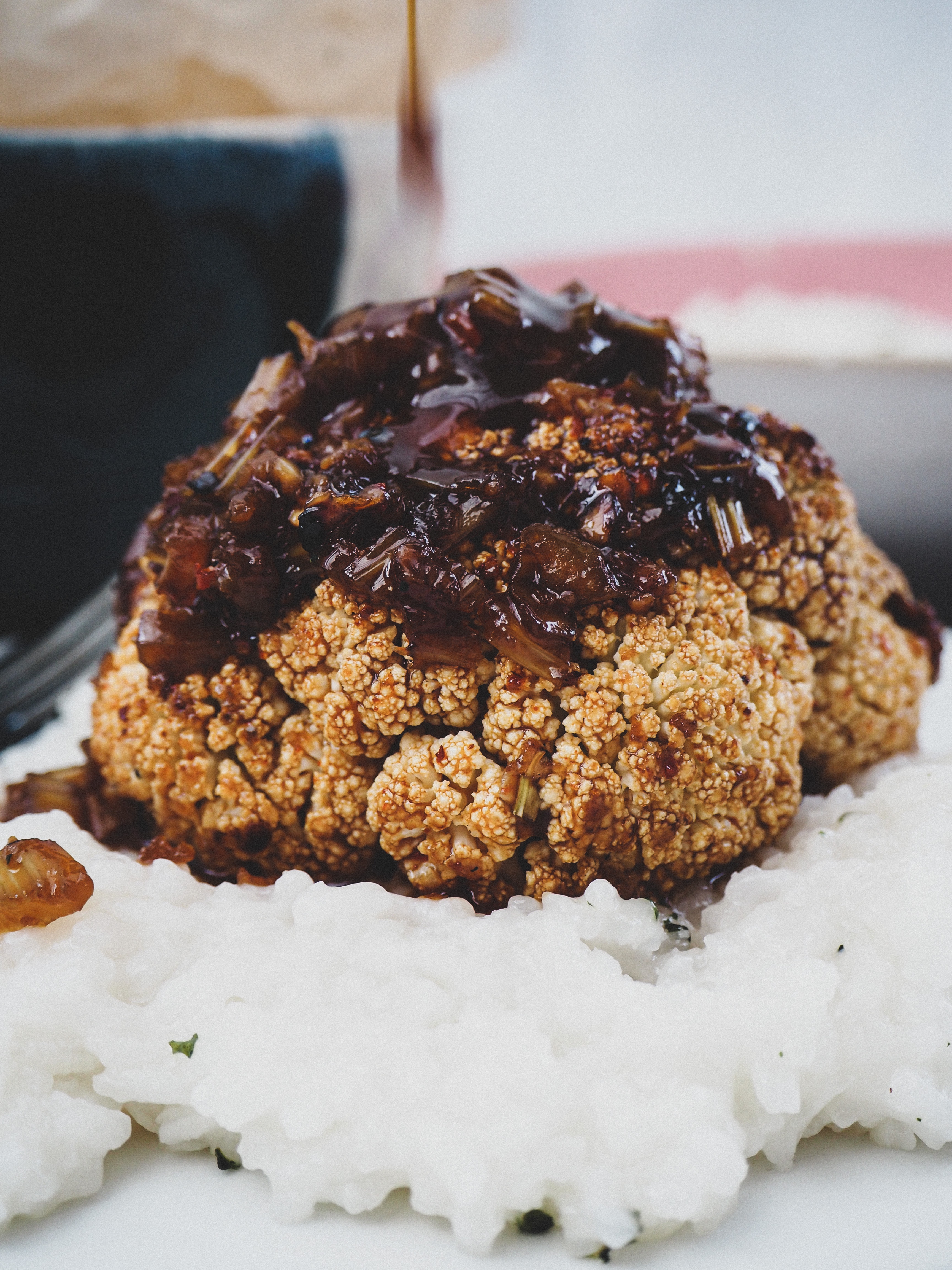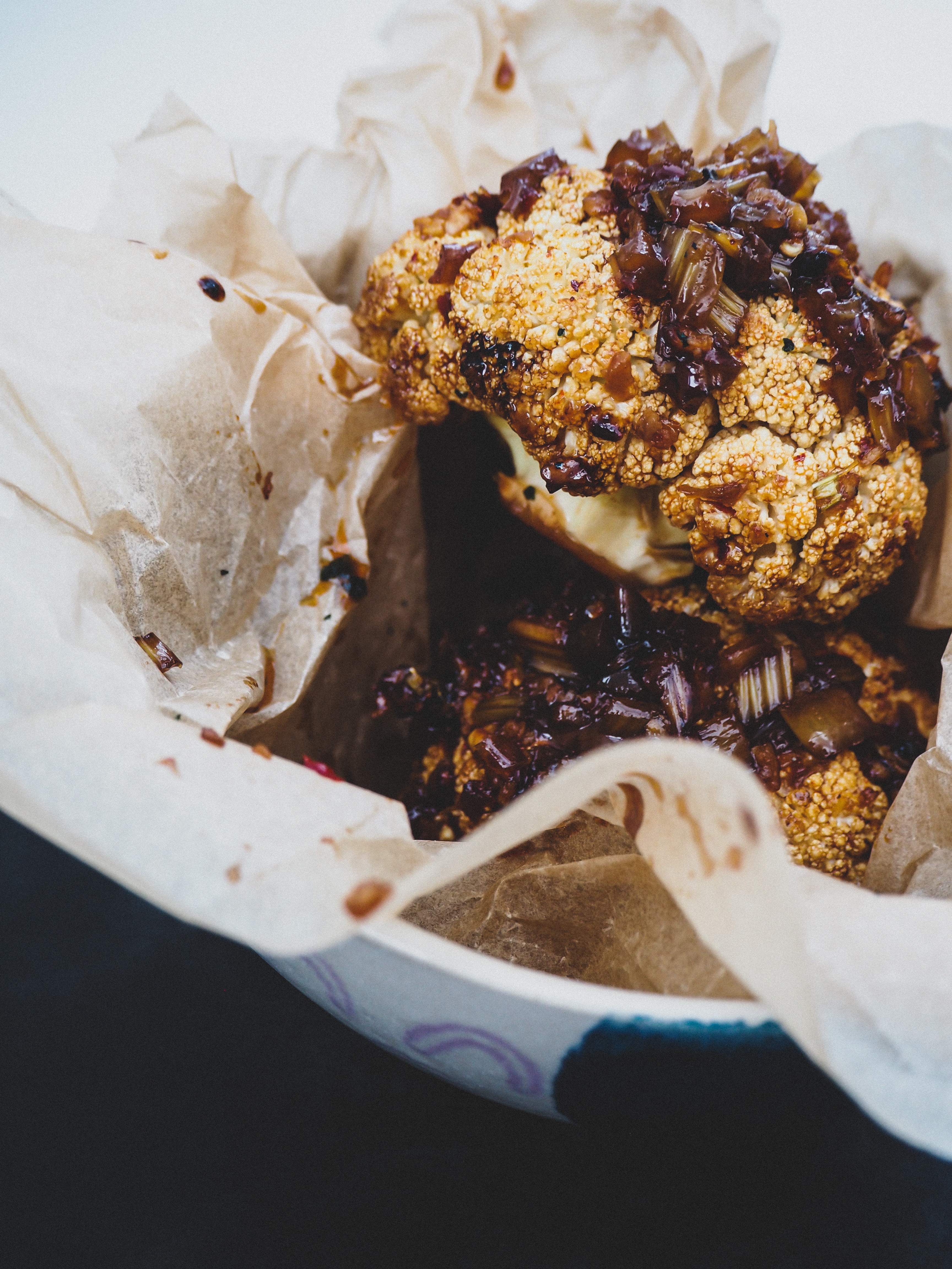 It’s also a super easy one to make, I used two small cauliflowers to serve 2 people, but you can roast one big cauliflower whole in the sauce or break up the florets individually. It’s totally up to you.
