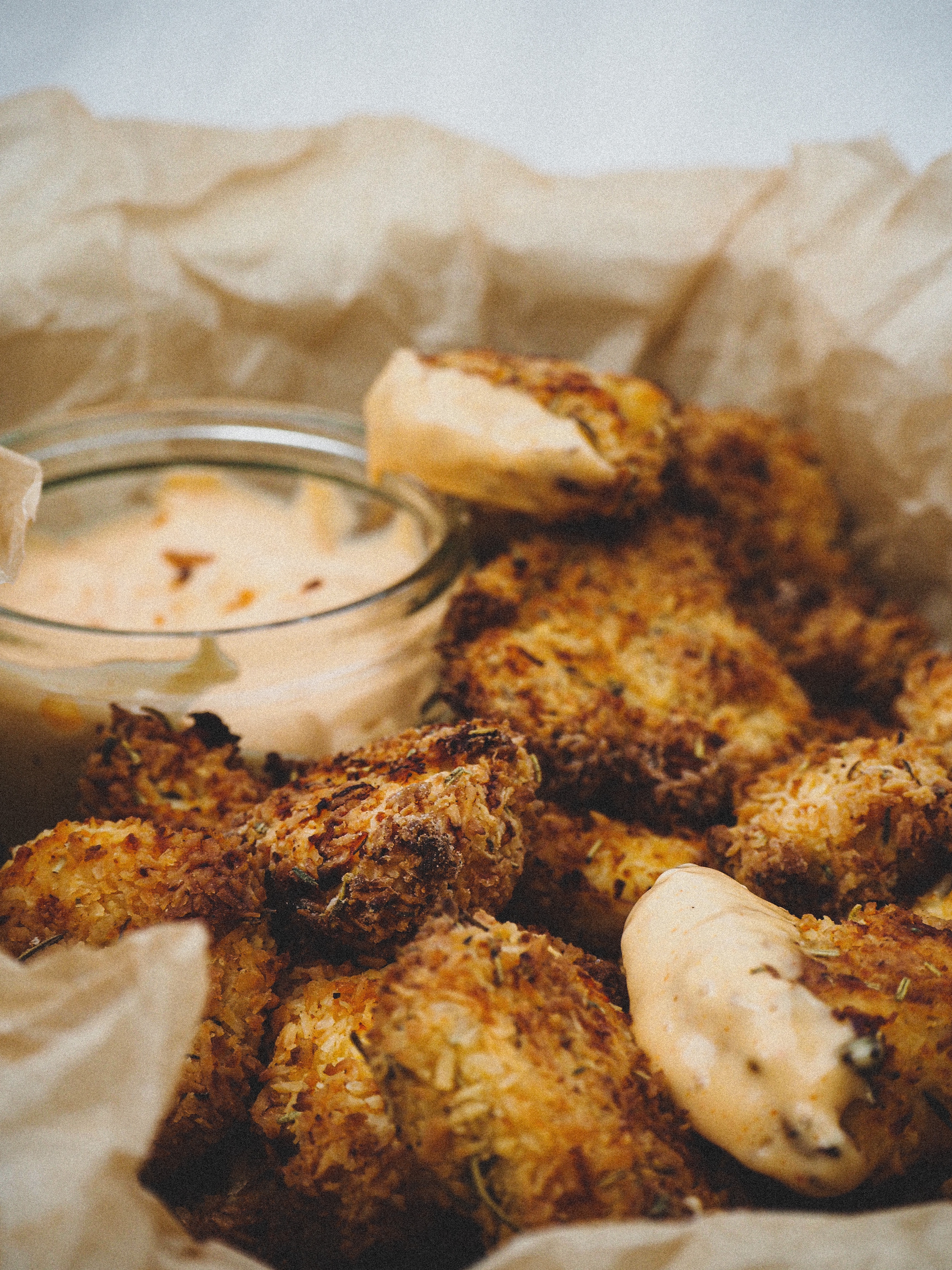 I’m not going to lie they’re basically glorified chicken nuggets, but there’s nothing wrong with that because I looooooove me a chicken nugget. They have a sweet, crunchy coconut coasting but I’ve combined it with a slight smokey spice, and they’re just delicious.
