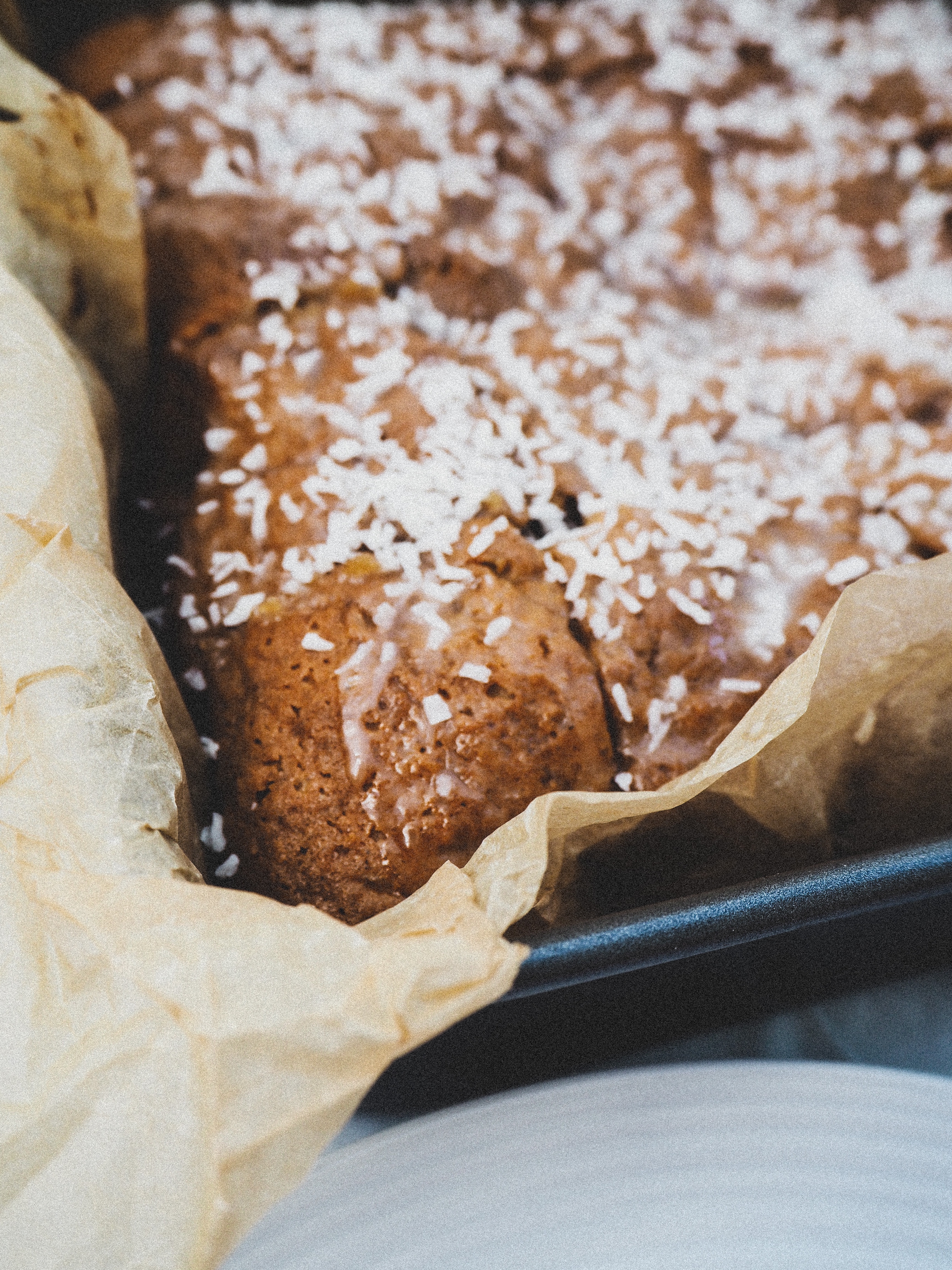 I really love traybakes, they’re so easy, one bowl, one baking tray kind of recipes are so great for everyday baking. But it’s always nice to spice them up a bit with different flavours, and coconut & chai are definitely that.