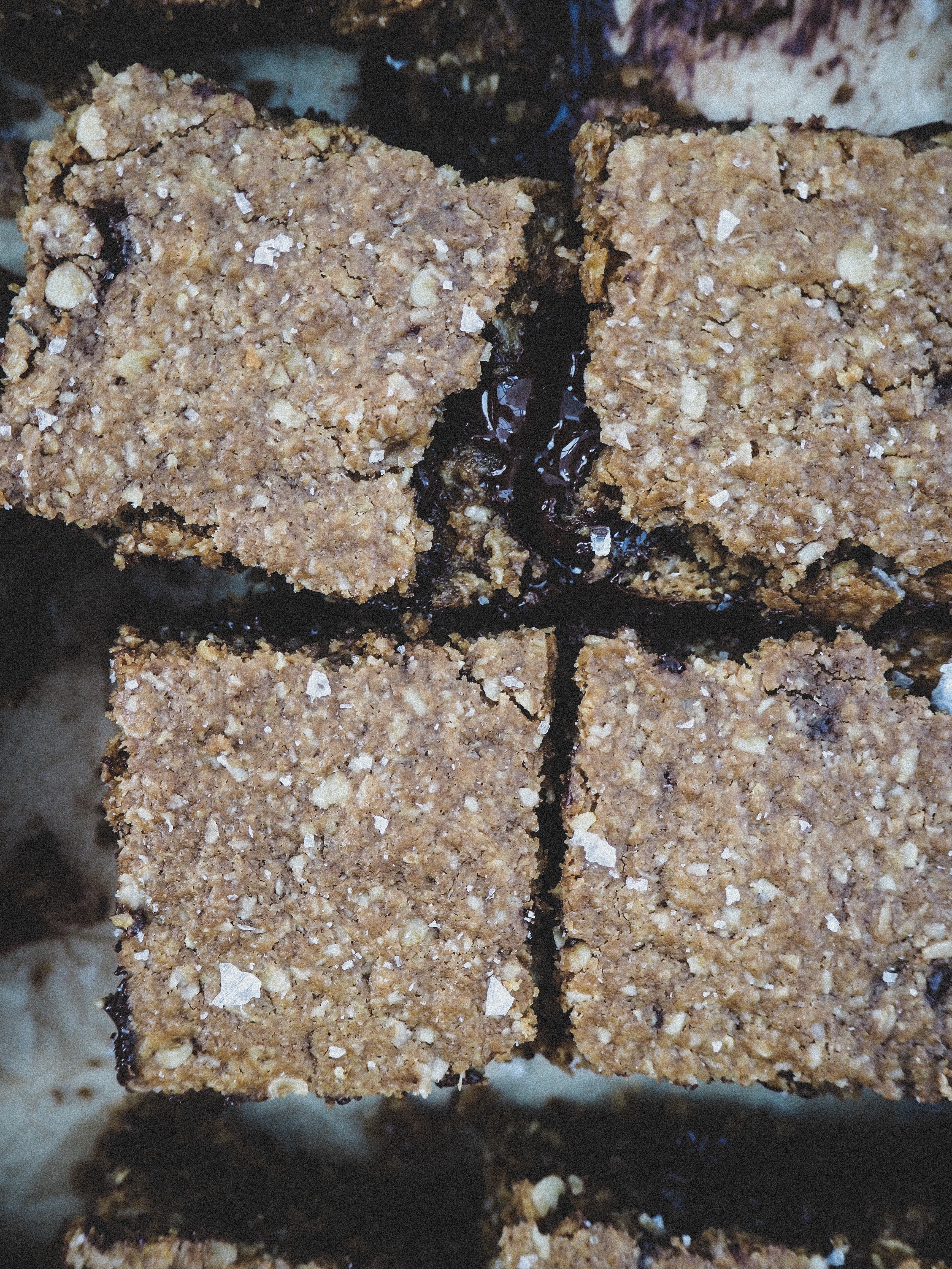 They’re not overly sweet, dark chocolate brings a bit of bitterness to counteract the sugar and there is some creaminess from the coconut oil that really lifts the whole thing. Along with chewy savoury oats its just a really good time.