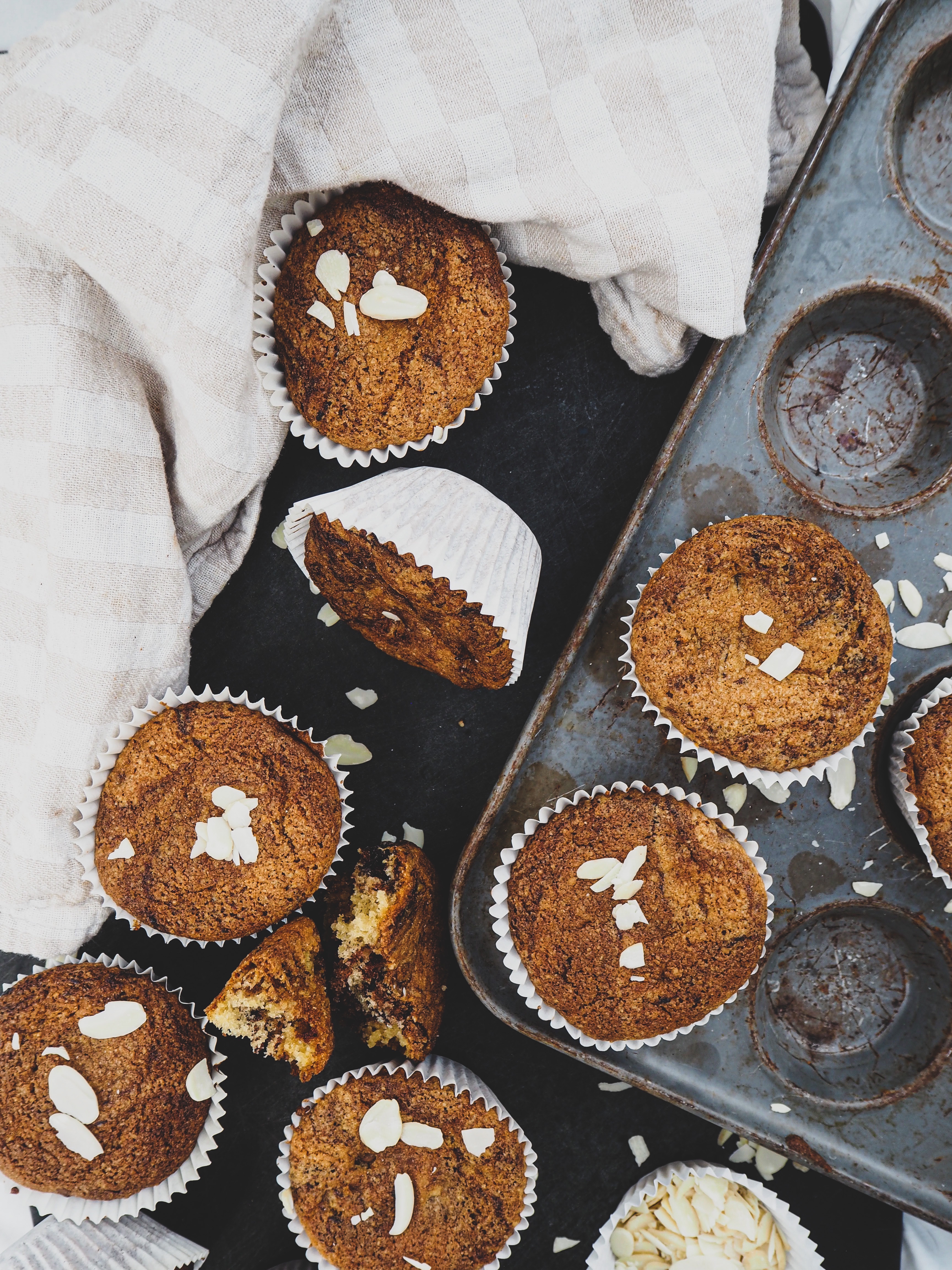 One thing I really love about these muffins is they aren’t too sweet. The dominant flavour is definitely almond which is very nutty and wholesome, and although these are swirly segments of chocolate it’s a much richer, dark chocolate, so it doesn’t overwhelm with sweetness.