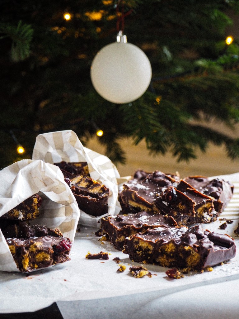 Now, Tiffin also makes for great gifts! Last year it’s what I gave my work colleagues and it went down really well. You can make this recipe in big batches, package them up in cute little bags, maybe even some ribbon if you’re going all out, and gift someone with festive deliciousness. They would also make a great door drop off if you wanna go C-19 style.