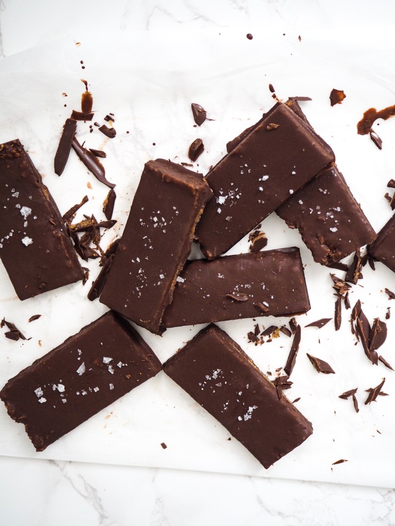 - Remove the frozen cornflake mix and cut into bars (or whatever shape you fancy!) then dip into the chocolate, coconut mix so they are each fully coated, then place back onto the baking parchment lined tin. Put back in the freezer for another 30 minutes so the chocolate can set.