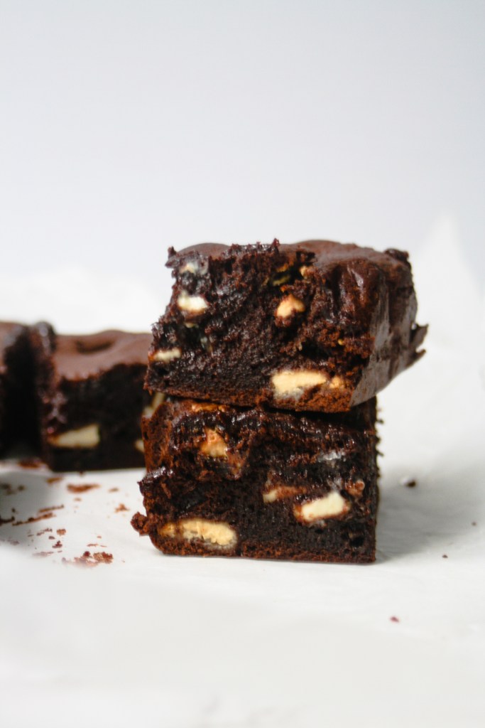 As if brownies weren’t already great enough, add white chocolate and malt powder and they are A.MAZING.